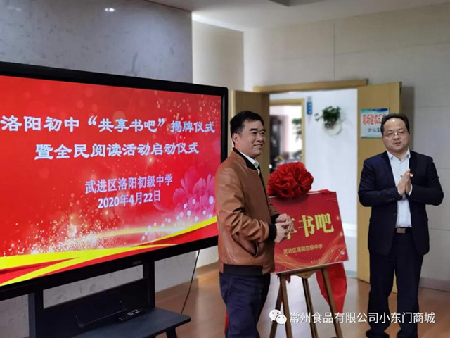 2020年4月22日,常州文化城聯(lián)合江蘇春雨出版社共同為洛陽初級中學捐贈圖書貳萬余元,同時參加了洛陽初中“共享書吧”的揭牌儀式活動。